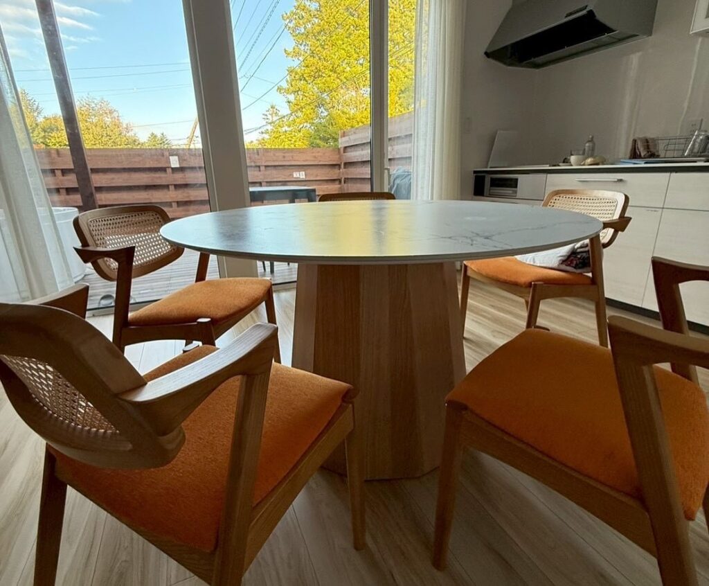 希望者7名で宿泊したのですが、滞在の中で特に印象的だったのは、丸テーブルを囲みながら食事や会話を楽しむ時間。
