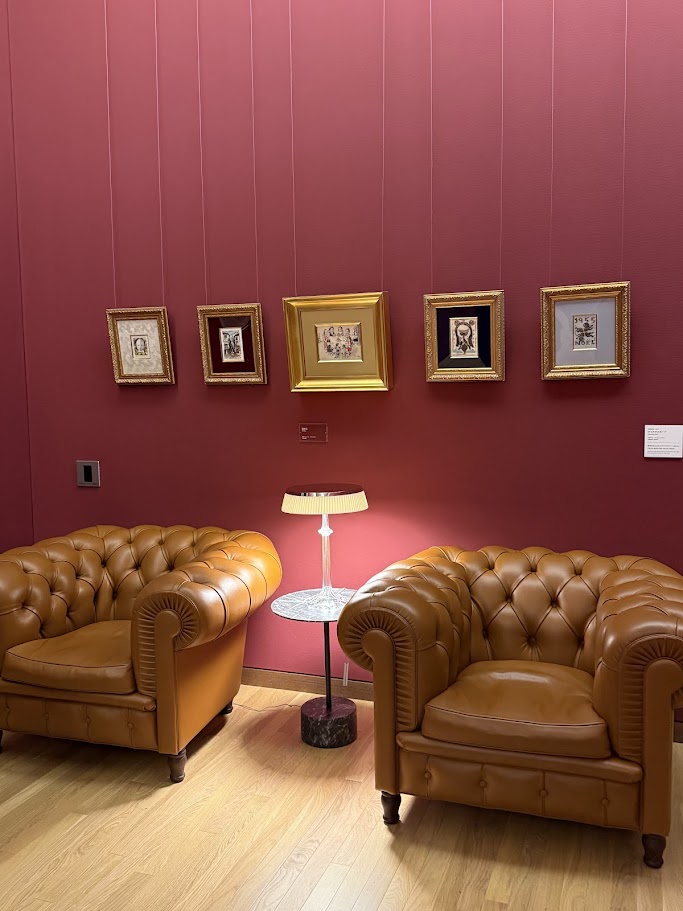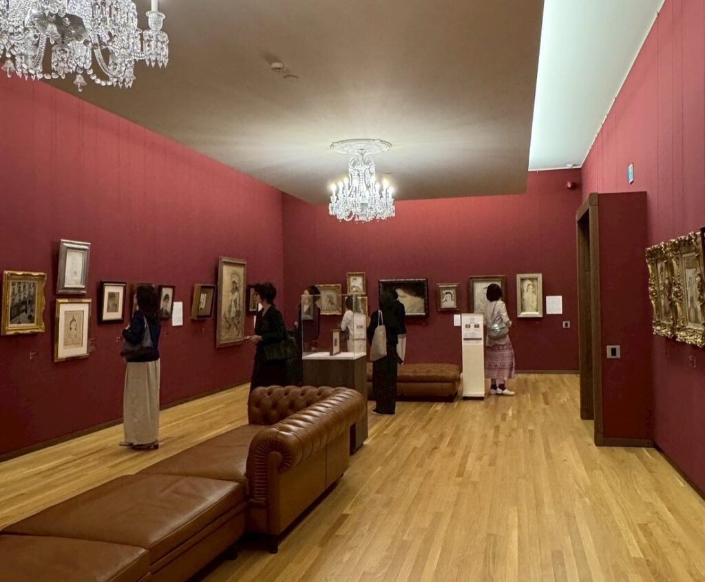 内部は各展示室ごとに異なる色調の壁紙が選ばれ、展示物との対話を意図的に生んでいました。