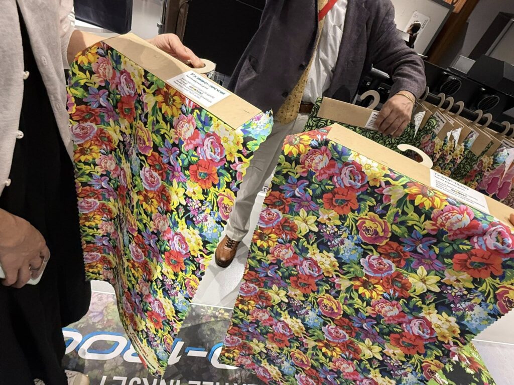 タオルや合成皮革でオリジナルグッズを作ったり、活用次第でデザイナー独自の完全オリジナルの世界観できるということでした。