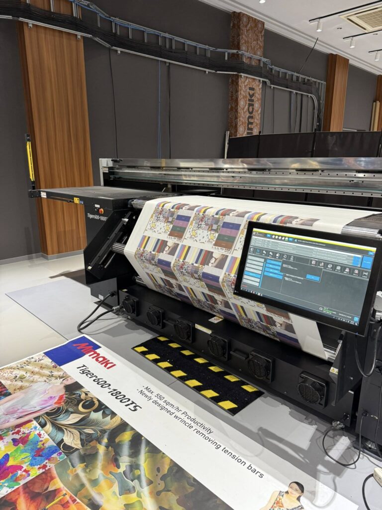 テキスタイル・アパレル市場向けのデジタルプリントのテスト環境のあるショールームです。
