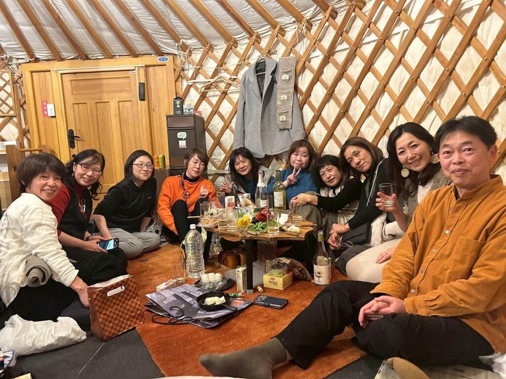 ゲルの中で夜更けまで語り合い、笑い合うのはNICA恒例の光景。