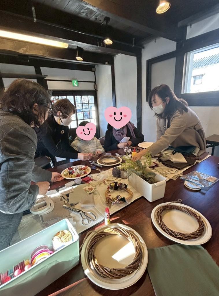 クリスマス仕様のファブリックリースや、インテリアに映えるタイルフレーム作りに多くの方が参加され、
