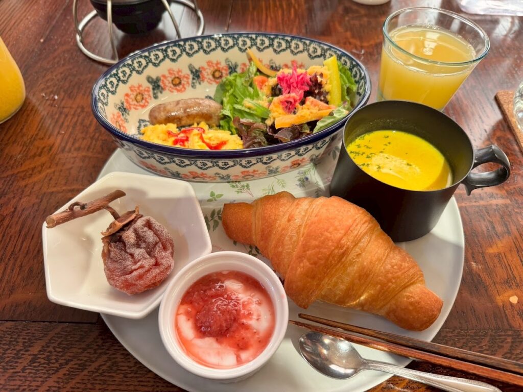 室内の暖炉の暖かさの中、冷えたワインや温めたチーズ、県内各地から持ち寄られたスイーツを堪能しました。
